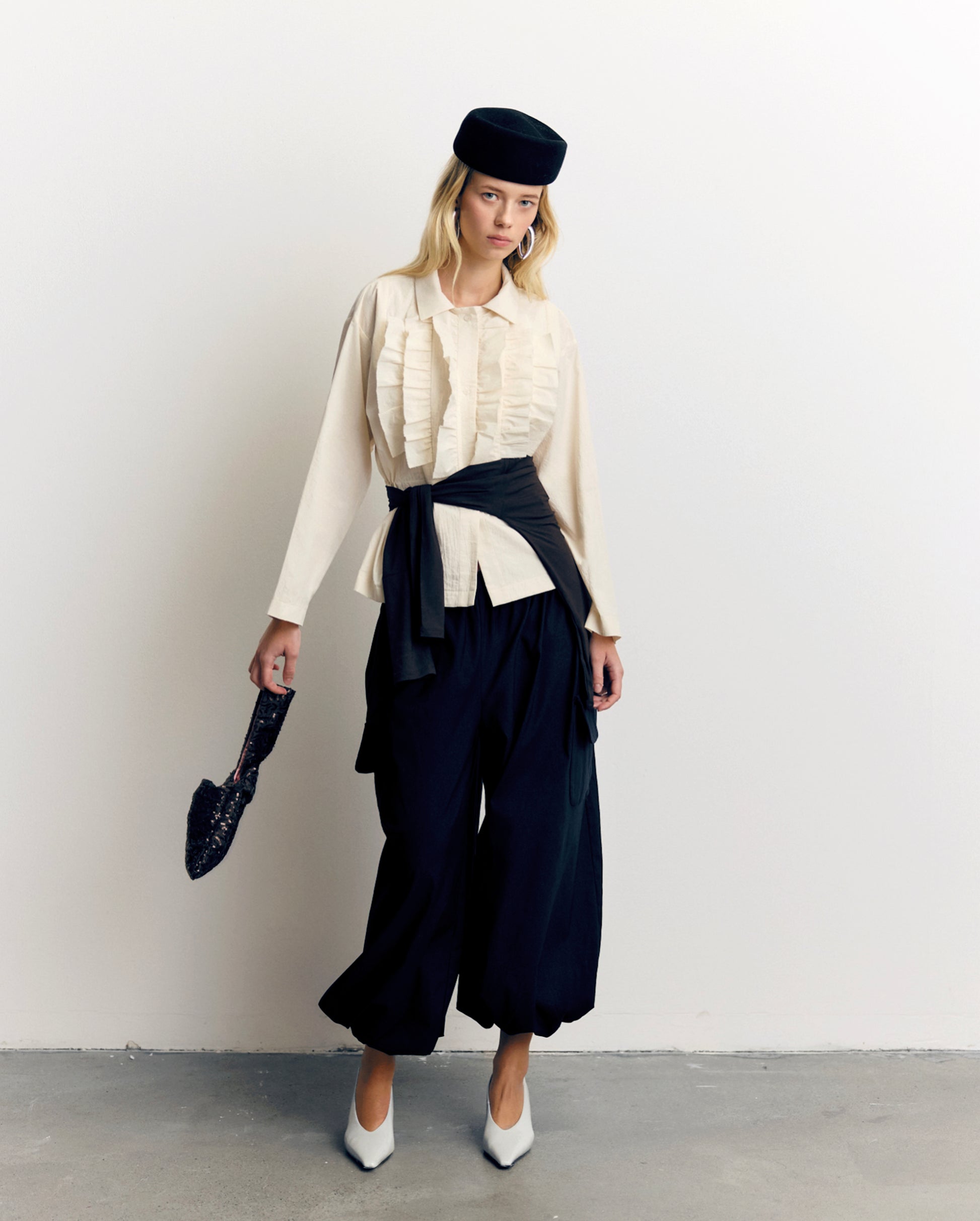 Liv to szerokie spodnie uszyte z cięższej tkaniny, z gumką w pasie dla komfortu noszenia. Wykończone kieszeniami z klapą, łączą wygodę z lekko japońskim i nowoczesnym charakterem.