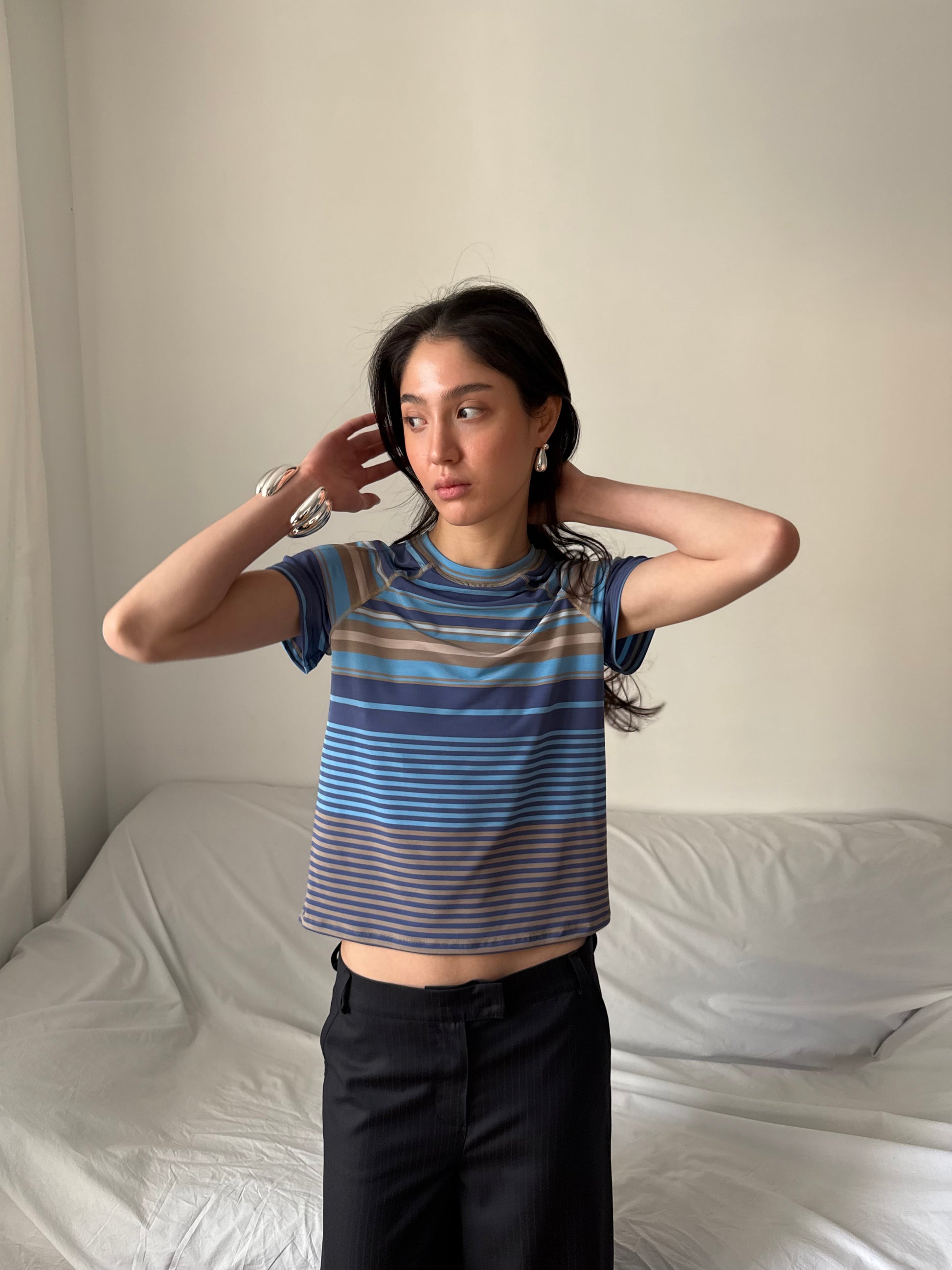 Tshirt o kroju mini w niebiesko brązowe paski.